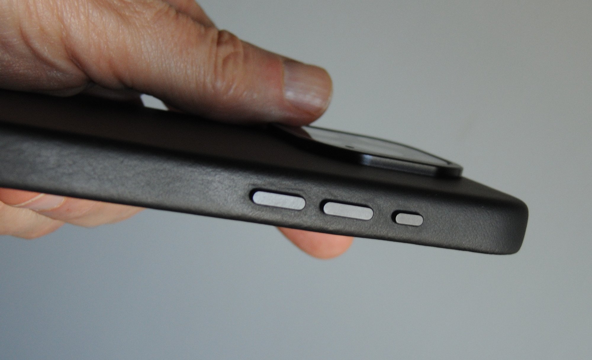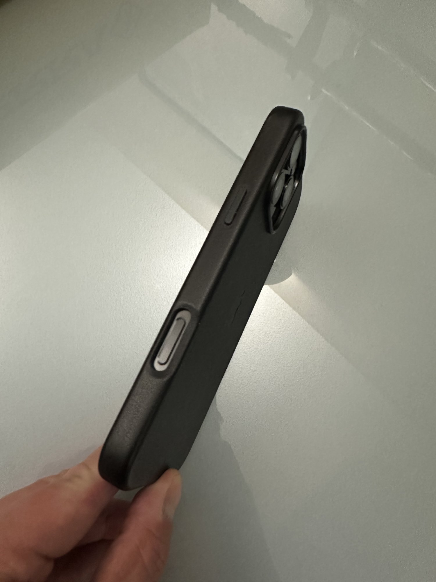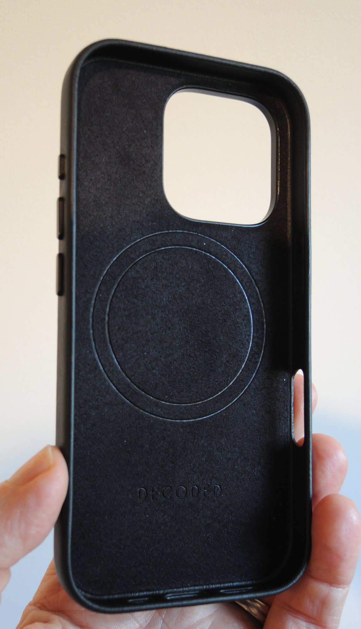 I just received this same model case, in black. It appears smoother than what I see in your photos, very little pebbling even under close examination, at least on the large flat area. I like it, hopefully it comes into its prime nicely like the Apple case did on my plain 12 (made the big jump).Pictures of the Decoded 16 Pro case in tan brown. Feels nice, a bit grippy which I'm sure smooths out like the old Apple leather cases.