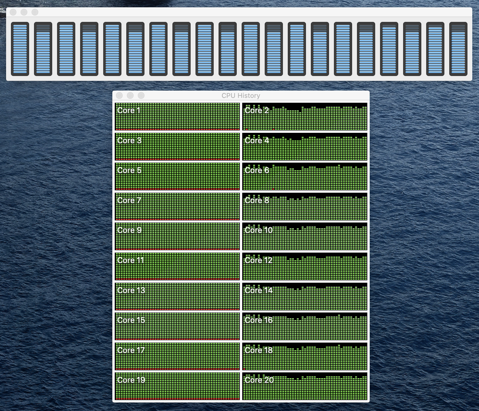 Below is my 10-core i9 utilization (according to Activity Monitor) while I'm working with four instances of a program that are each doing different things. And yes, it's beneficial to my workflow to have four instances at once – they generate unique outputs that are critical to my work. I could probably use around six instances honestly...