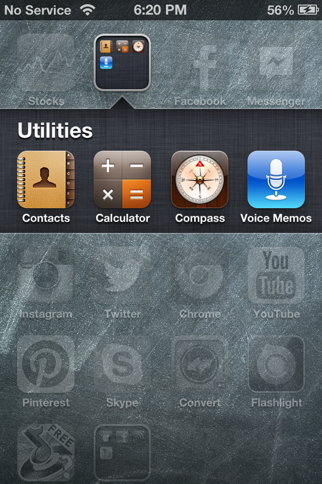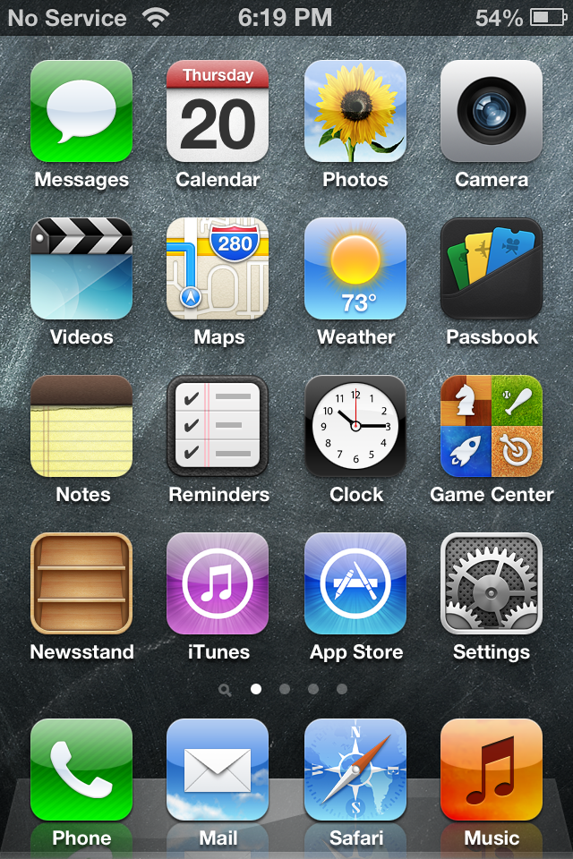 This may sound like an odd question, but what is the default layout of apps on an iPhone 4 running iOS 6. When I installed iOS 6 onto my iPhone, it had Passbook in the lower left hand corner of the grid even though it should have been up two rows and my Clock, Voice Memo, and Calculator apps were in a "Utilities" folder but aren't anywhere in sight (except for Clock) on the image shown on the Apple website. If someone can post the default layout that would be great (both pages please
