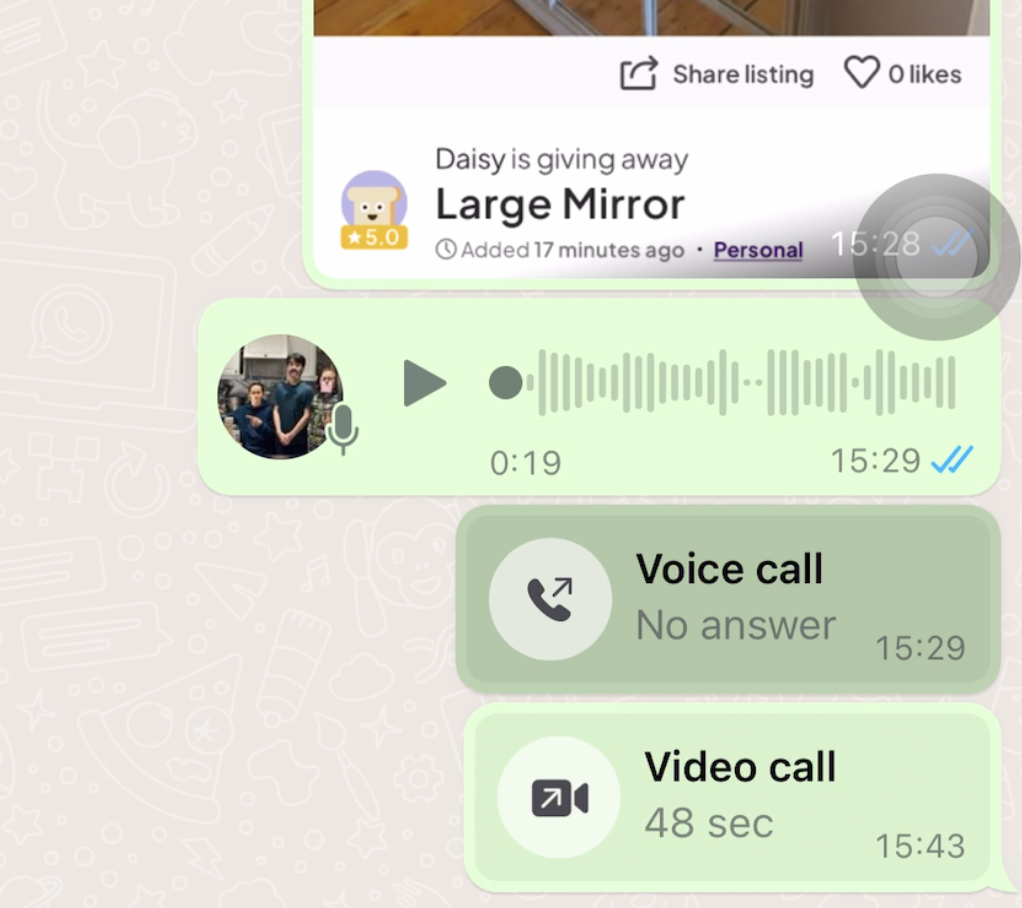 Can deleted messages on whatsapp and wechat on iPhone / desktop be recovered on iPhone if no iCloud space or any other app other than itself? please confirm, if the whatsapp / wechat timestamps recorded 'voice call' / 'video call' deleted then no record of it exists correct? esp if no icloud space or any other app? hope pics makes this clearer