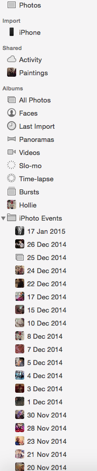 But when i expand the drop-down arrow for the sub folder 'iPhoto events', I'm listed with about 200 events from iPhoto.