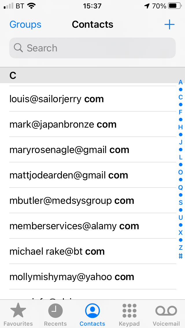 It would seem that every time I have sent an email to a .com it has been added to my contact list, there are hundreds of them!!
