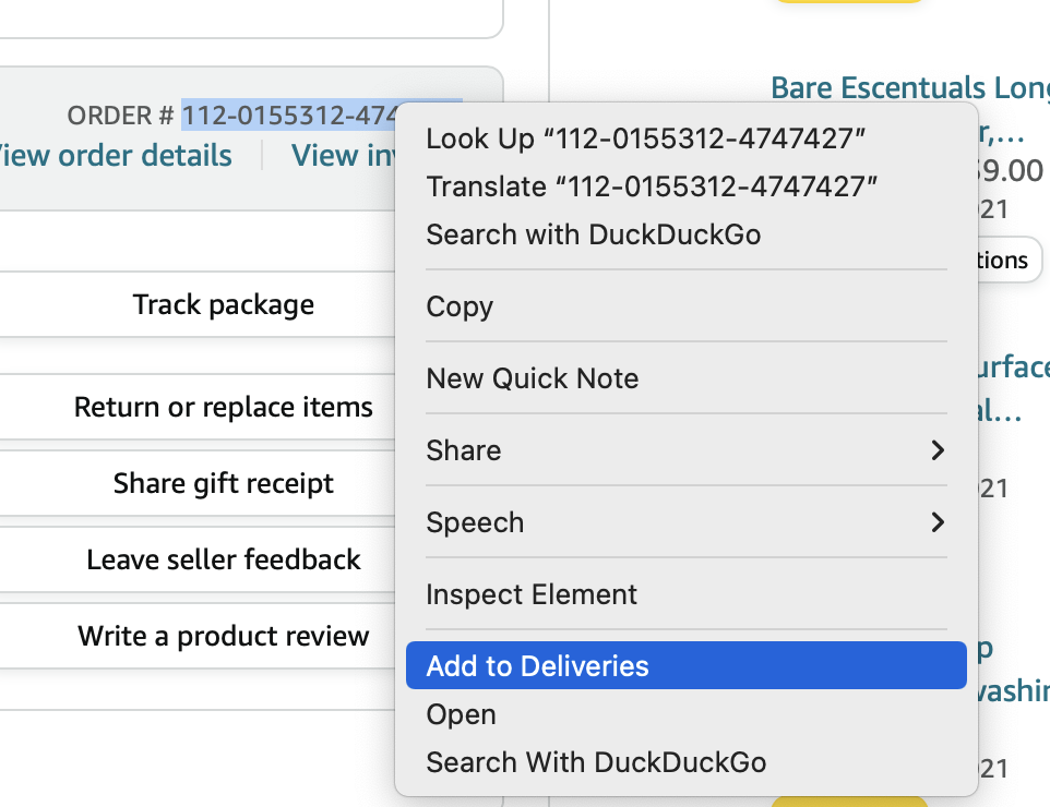 I've been able to track Amazon orders by right clicking from the Amazon order screen and adding the order number to Deliveries. Once in a while (maybe every few weeks) Deliveries will prompt me to verify my Amazon login info, but it remembers it going forward for another few weeks.Deliveries used to be able to track Amazon shipments just from an order link, but that is no longer possible. Tracking either does not work, or it requires logging in to Amazon with a login and password, which is a hassle.