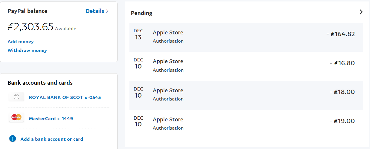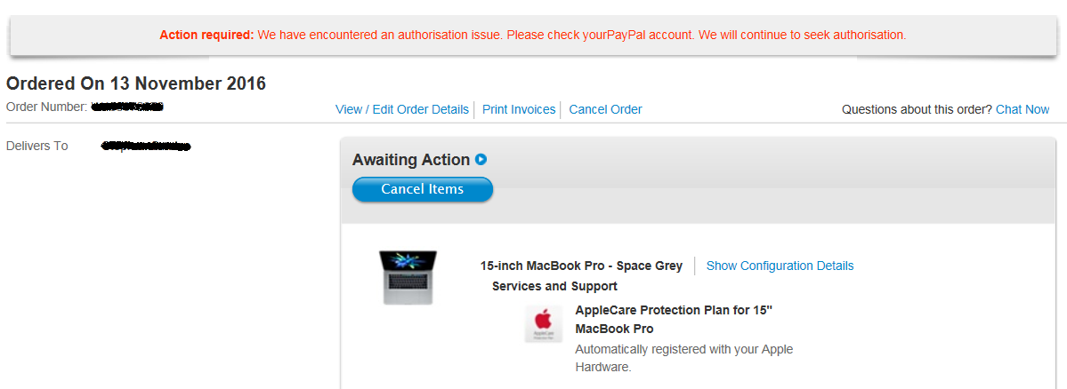 Both my bank and card are "authorised" with my PayPal account but I'm still not seeing any further action with my order... Apple said they would attempt to take the money each day for the next week and then cancel the order if it wasn't successful