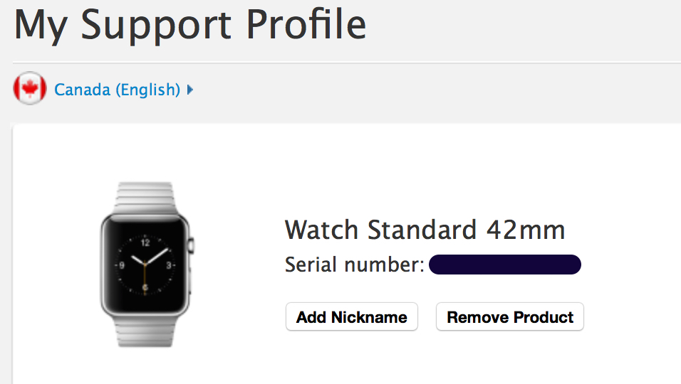 Anyone else have their watch show up in their support profile? I'm a little concerned about the fact my 42 SS CB shows up as "Watch Standard". This pic is of what looks to be SS LB.