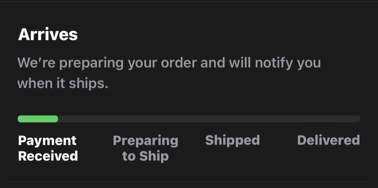 That's a pretty nice one, must be from some canceled ordersI just got a text message from Apple saying my Dec. 3-24 ship time was moved up to Nov. 17-24. Nice!