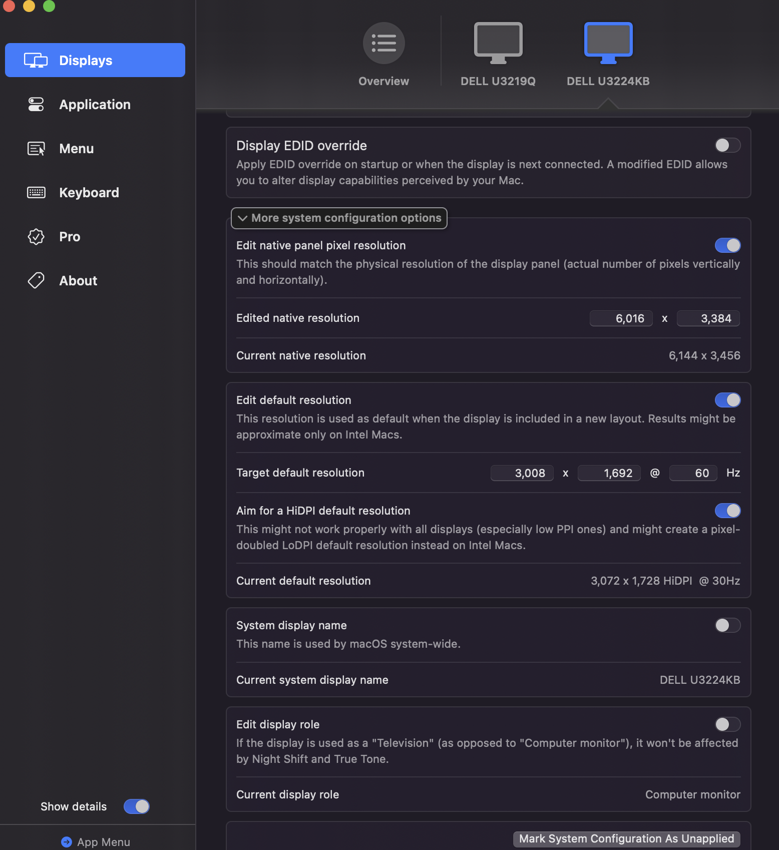 6072x3384, the UI and fonts are scaled slightly larger (my Dell is still set to 1:1 scaling, i.e., no scaling), but macOS then outputs this slightly scaled size as a