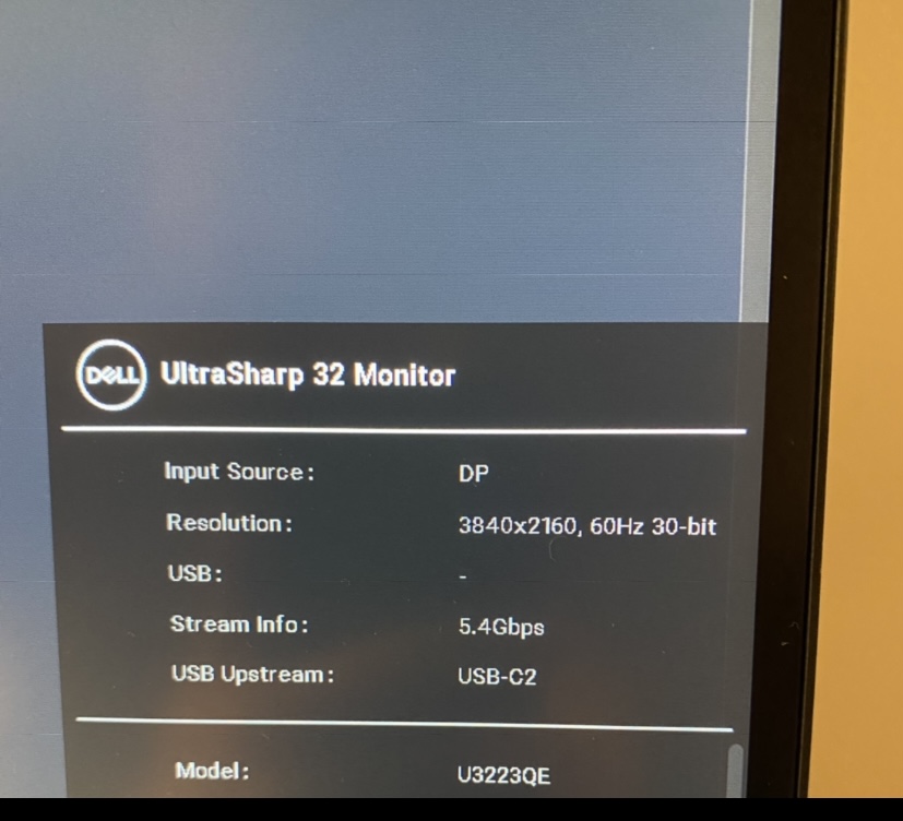 (2) My Mac mini connected via HDMI will only give me 2160p 24-bit (per the monitor status). However, if I use the USB-C port, via a Thunderbolt 4 cable (purchased from OWC), that I normally use for my Dell laptop I get 3840x2160 60Hz 30-bit. I thought this was due to me using an old Spectrum supplied HDMI cable so I purchased an HDMI 2.1 cable from Anker and it made no difference per the monitor status.