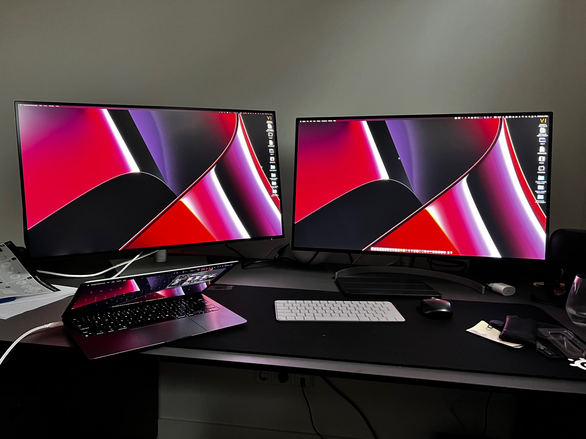 - So, my current setup is the LG UltraFine 5K Display as my primary display and the P2721Q as my second monitor. At some point of time the P2721Q will go to my bud.