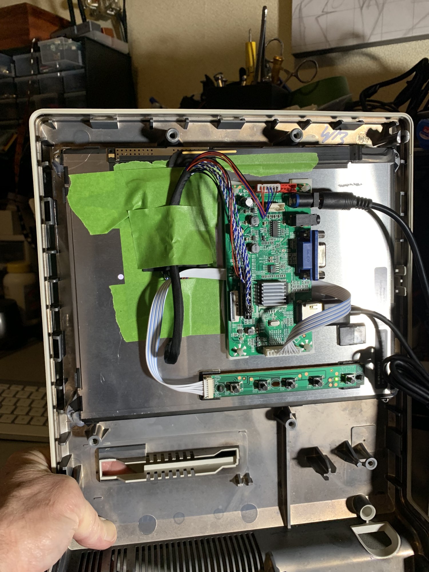 I have a 9.7 ipad4 screen in a Mac Plus Case with a Mac mini 2012 running OpenCore+Ventura, however the screen display is obscured around the top and sides. I’d like to “shrink the desktop” so that the whole desktop is viewable. Basically shrinking the desktop down and having it in the center of the display with an unused boarder around the desktop. Something like this (below). I want to do this as some of the LCD panel is obscured but I need to access the whole desktop.