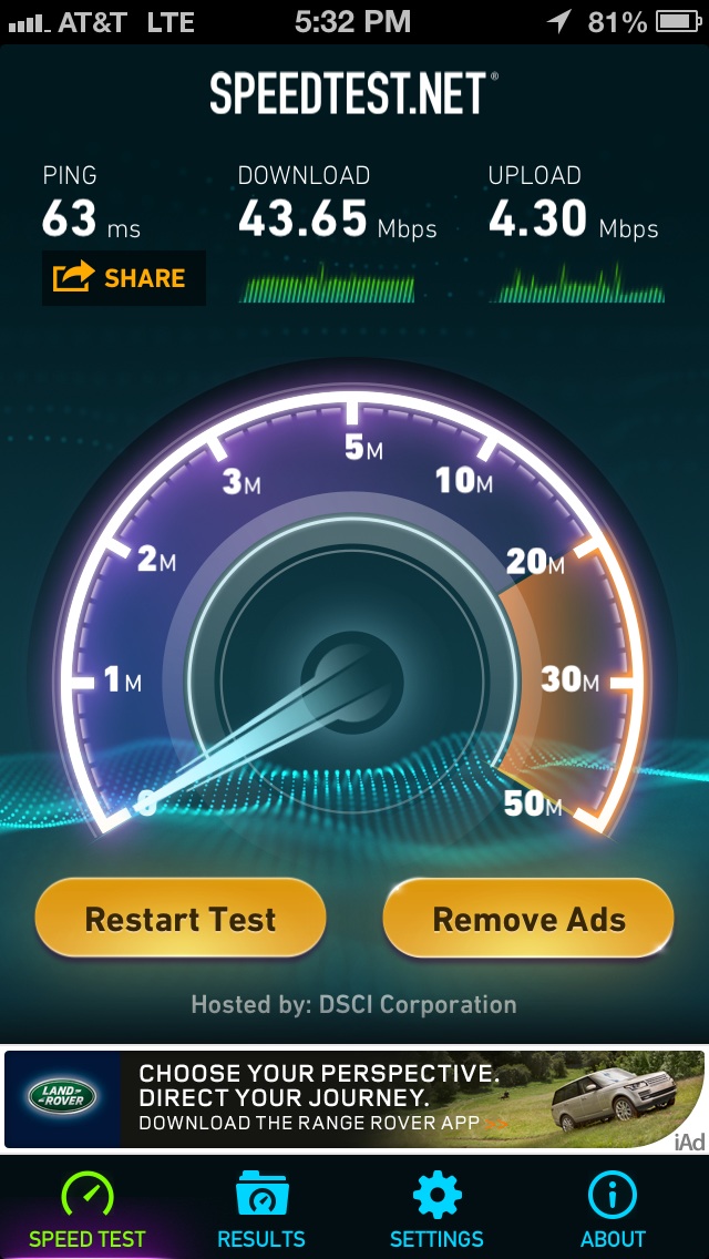 This is not true at all. I can easily get over 40 Mbps over LTE at work and between 20 and 30 Mbps at home, again on LTE on AT&T iPhone 5. This is in Massachusetts.