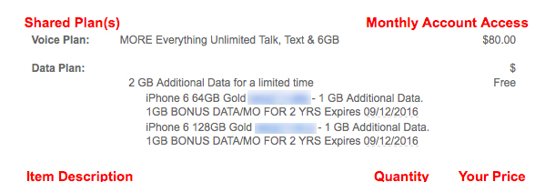 I was reviewing my Verizon Iphone order of two Iphone 6s, I did not change my 2 year-contract plan or anything else with Verizon and I do NOT have the Edge program. But It appears they are given me an additional 1gb of data per phone for a total of 2gb because I am upgrading the 2 lines. Is this correct??? Here is a screen capture from my order acknowledgement that makes me believe it is.