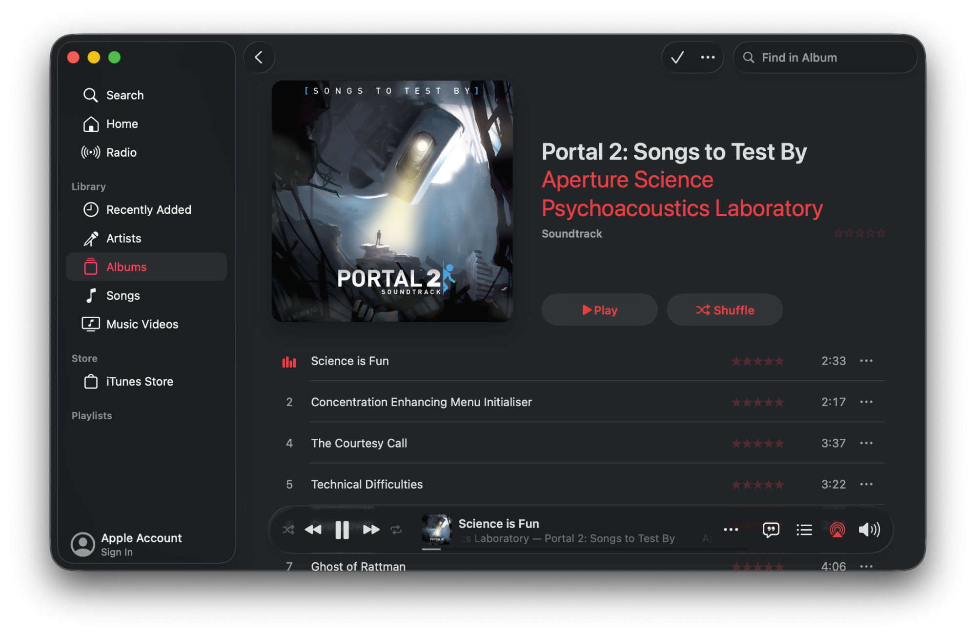 There's a lot of depth in that screenshot. Top bar, now playing section, the album playlist expansion, the missing album covers, the sidebar looks like it tucks underneath the Albums section, and even the pill based tab bar up there makes sense.