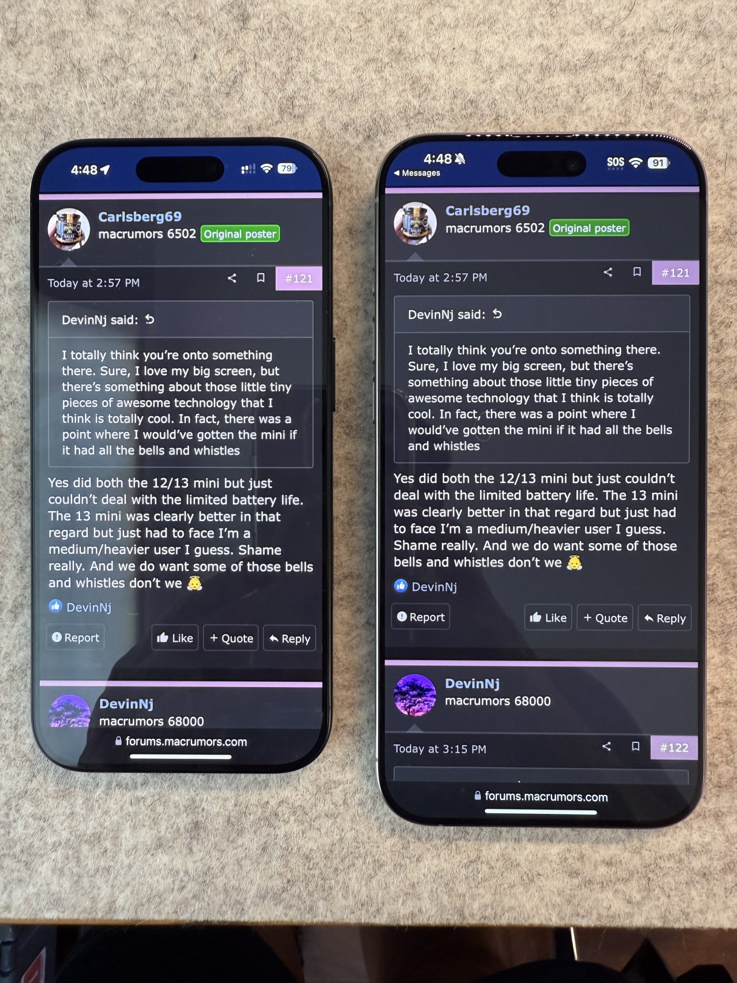 I wish I'd of went to Pro. The Pro Max was good when I used my phone for work, but we're no longer allowed to do that so I'm not on my phone nearly as much. Now I wish I'd of had a lighter/smaller phone to carry around. I'm trying to spend less time on the screen and that would help.