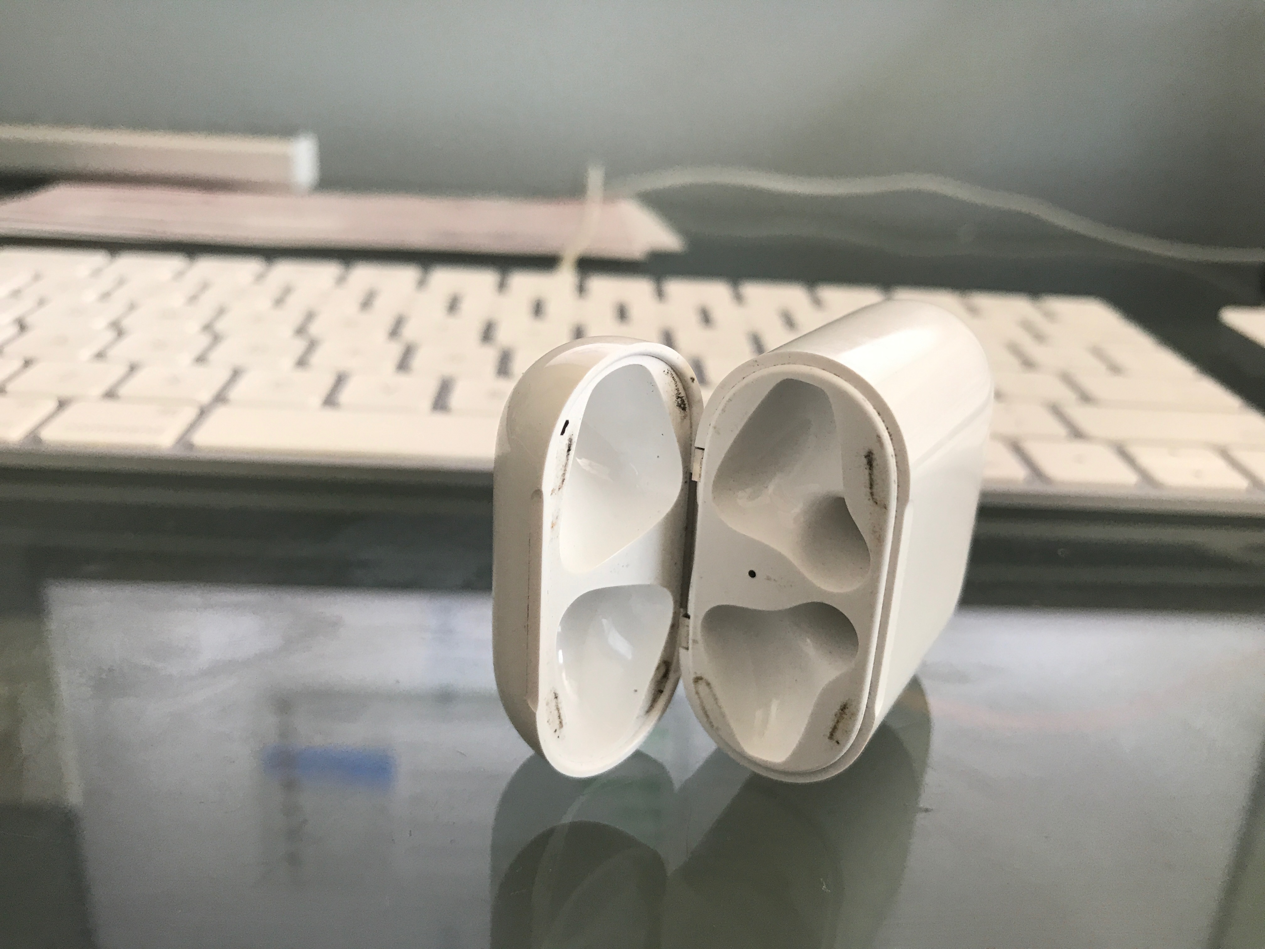 [doublepost=1511150032][/doublepost]I tried several things....then....THE SOLUTION! A q-tip just by itself with nothing on it. It has enough abrasiveness and gentleness to take care of all the “stuck” particles and not harm the plastic case. But I recommend doing it every once in a while to insure the particles don’t get too imbedded in the case.Ever since I got my AirPods I've noticed that there has been dirt on the case and it won't go away. its like the friction has etched them or something. Anyone else had this issue? View attachment 690915