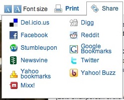 I've searched MacRumors and Google, but haven't found anything, so I'm wondering if I'm the only one annoyed by this mouseover that pops up when visiting many news sites, that allows you to share the article on Digg, Del.icio.us, Reddit, Stumbleupon, Yahoo! Buzz, Mixx!, Twitter, etc.: