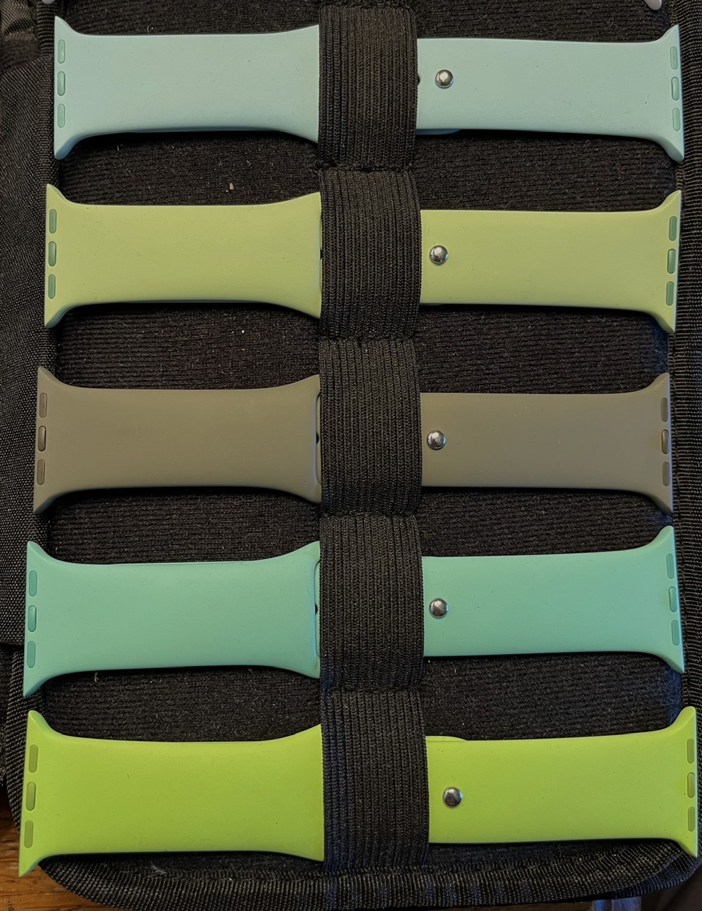 Top to bottom: Marine Green, Mint, Khaki, Spearmint, OG Green, Olive Flak/Black, Clover, Cargo Khaki/Black (which I’m wearing today)...