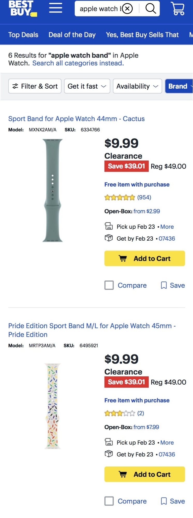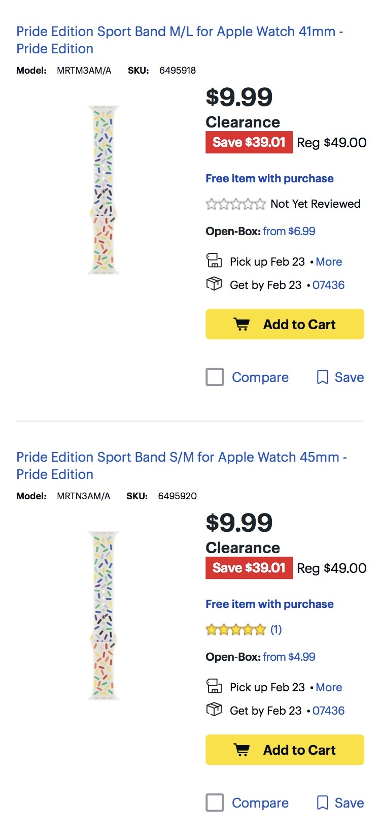Best Buy $9.99 for Cactus 44mm, Pride Edition 45mm M/L, S/M, and 41mm M/L