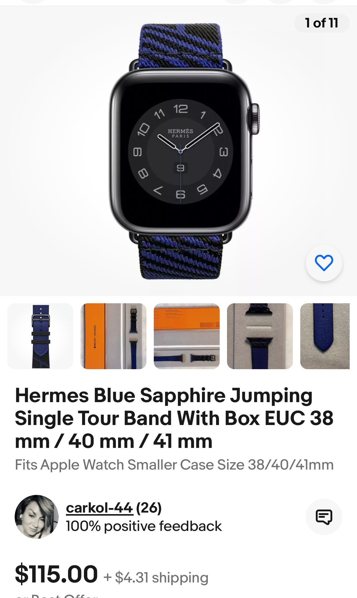 41mm Hermes Jumping Saphir Bleu for $119.