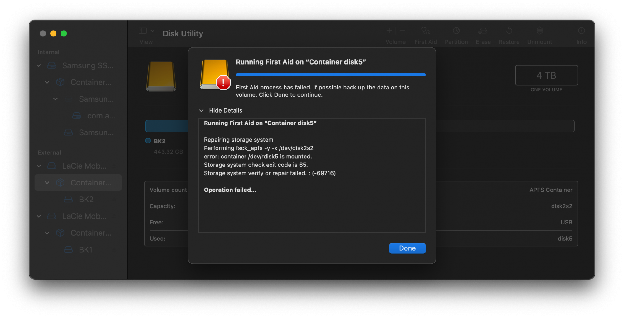 Running First Aid on “NVMe MacOS” (disk4s1)
