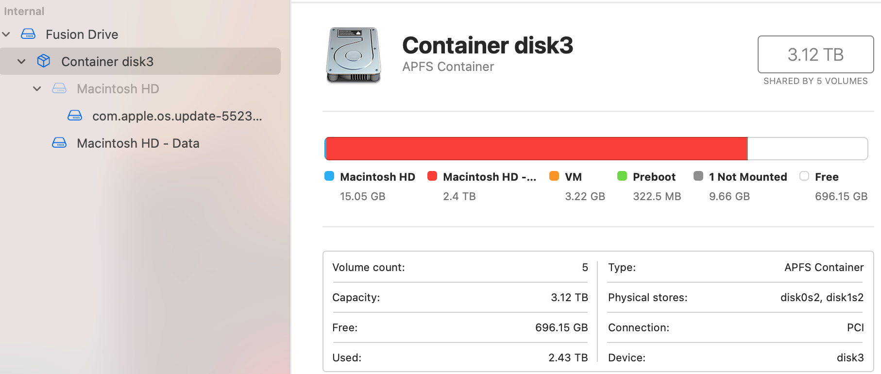 I presume there are other containers/volumes that are hidden (for firmware etc).