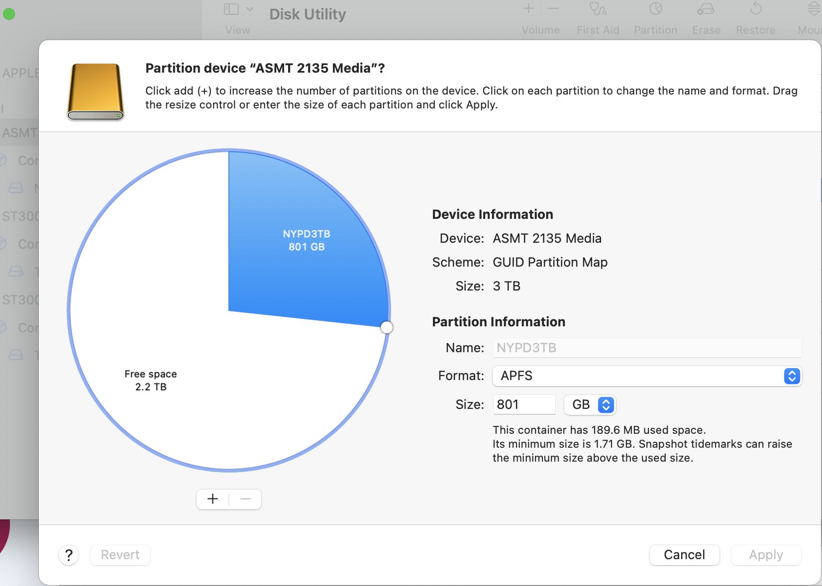 With APFS, partitioning is no longer really a "thing". We used to use partitions to keep data logically separated. APFS is designed so that a normal device has a single Container. Inside the container are Volumes. The volumes are logically separate in the way that partitions were separate on older file systems. But whereas partitioning required space to be dedicated, APFS volumes all share the space inside a single Container.Why is the partitioning not working.