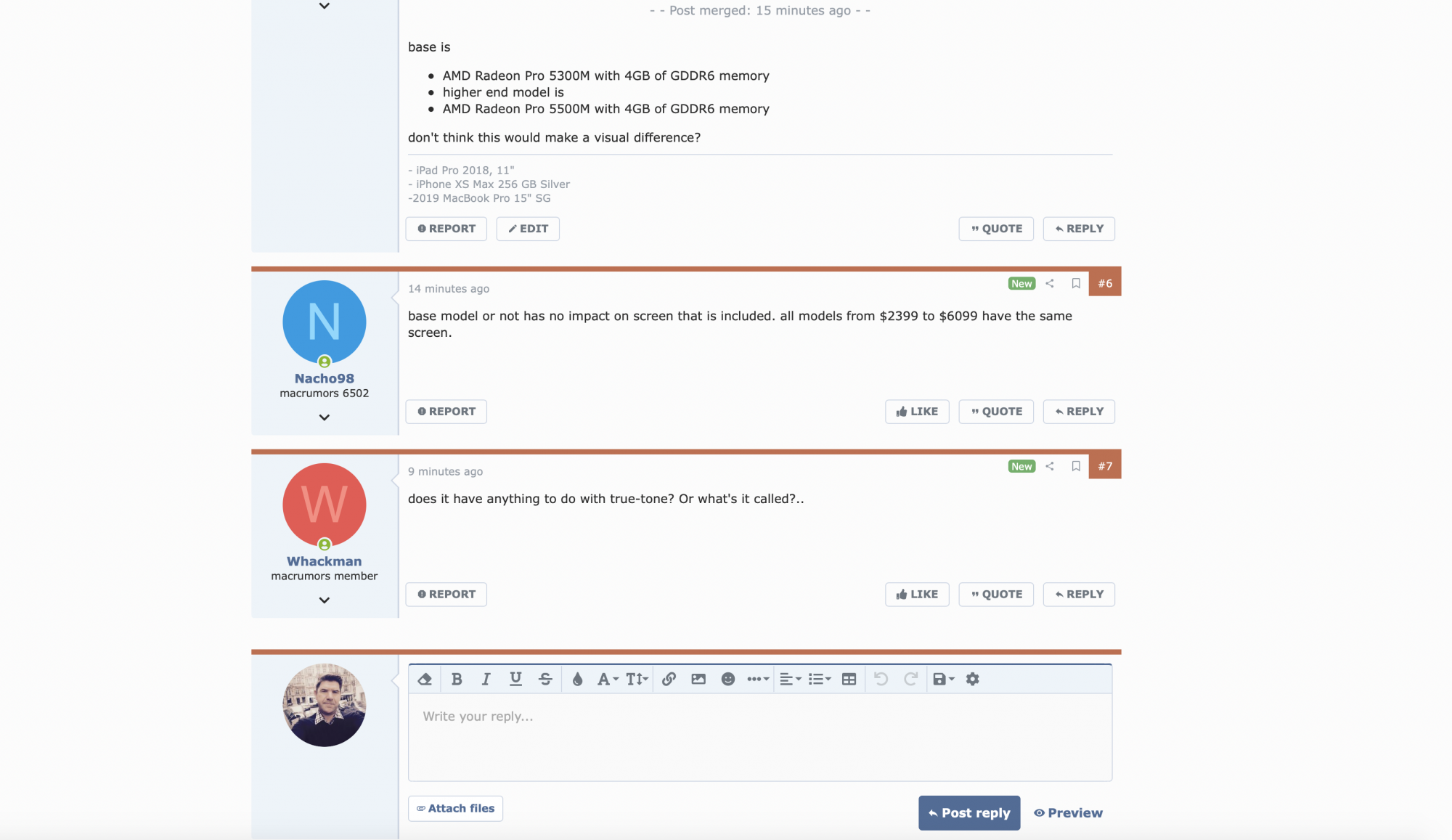 Anyone get the base model ($2399)? I do really like it, however, the only thing I notice is the colors seem a bit different (compared to my old 2019 15" base model) , not bad just maybe a little less bright/saturated than the 2019 15"? or is this because its the baseline? anyone else seeing similar? Love the keyboard! Size is about same as the 15", not a big difference, thinner vessels are nice! speakers unreal!