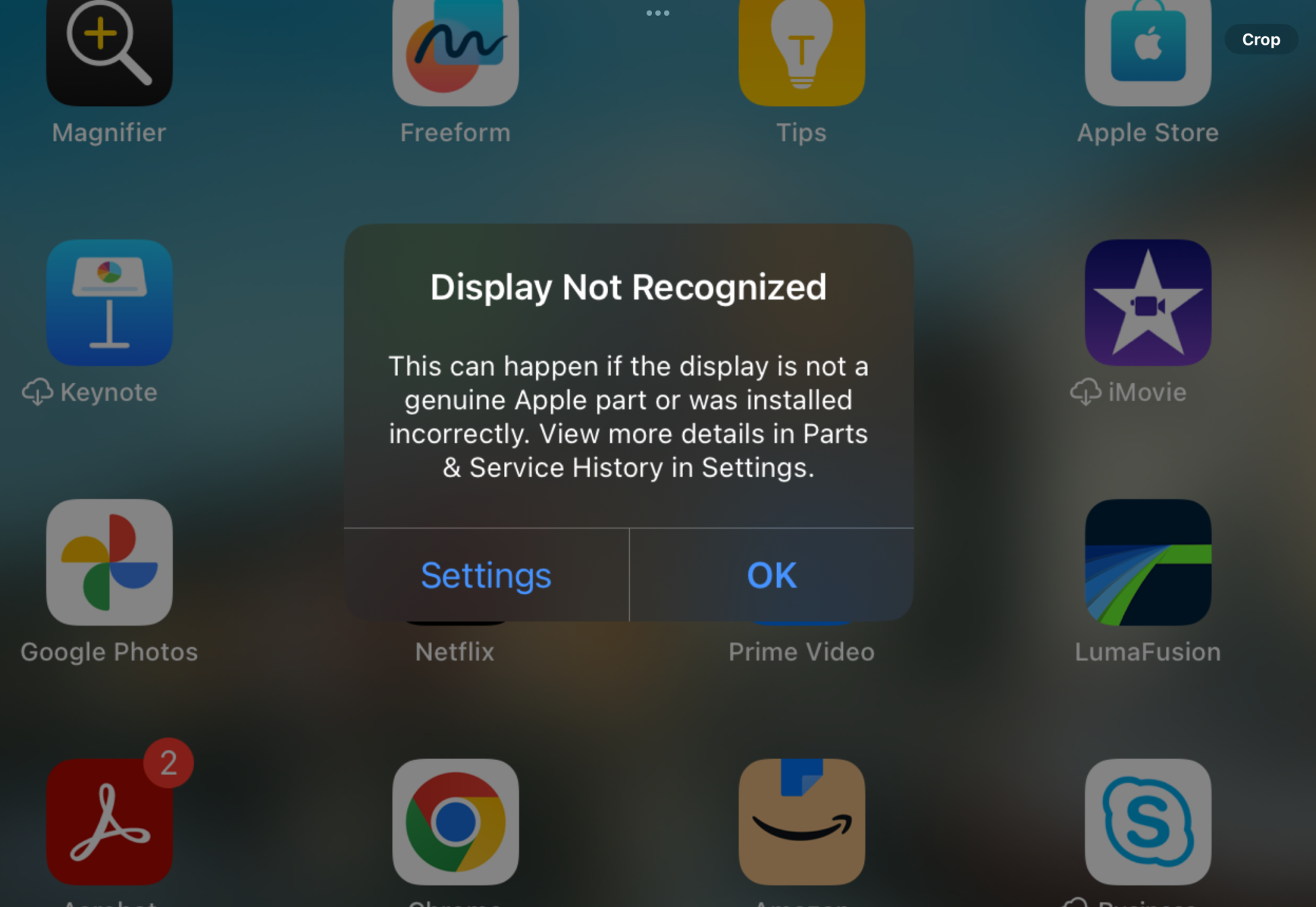 This is odd. I've been using my new iPad Pro 11" M4 all afternoon and I was getting software-related flicker on the top email in the Mail app sidebar. So I did a hard reset and, upon rebooting, I got a "Display Not Recognized" message in the Settings app. There's a badge on the Settings icon too. Here's the message. Assume this is some kind of bug.