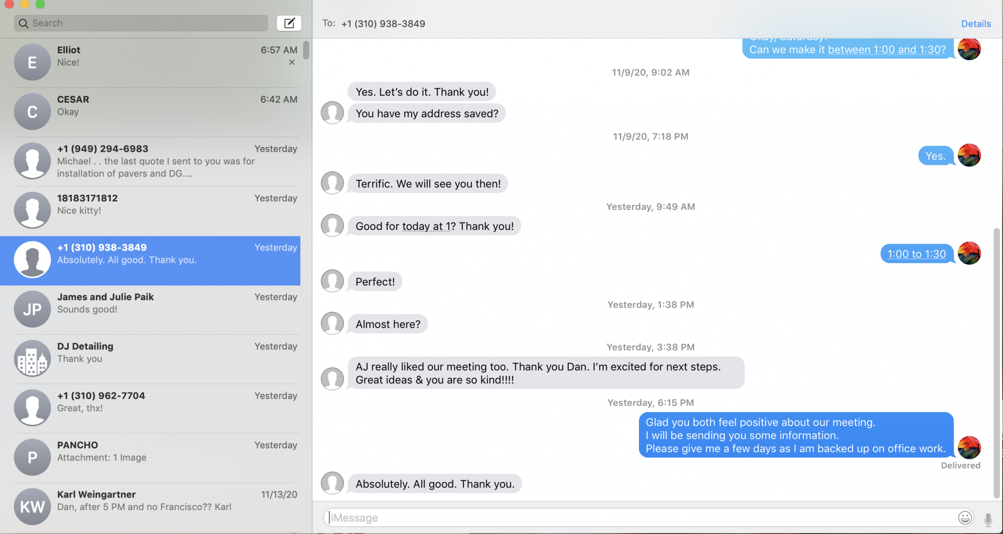 Most of the people I text with don't have photos so these windows are all blank with a silhouette of a face.