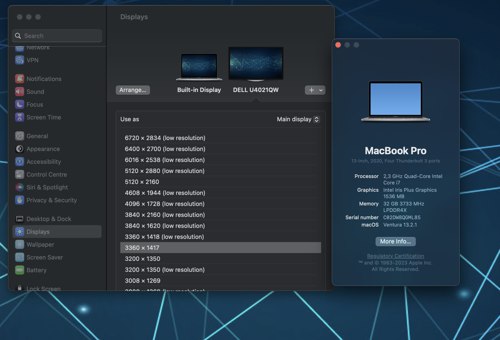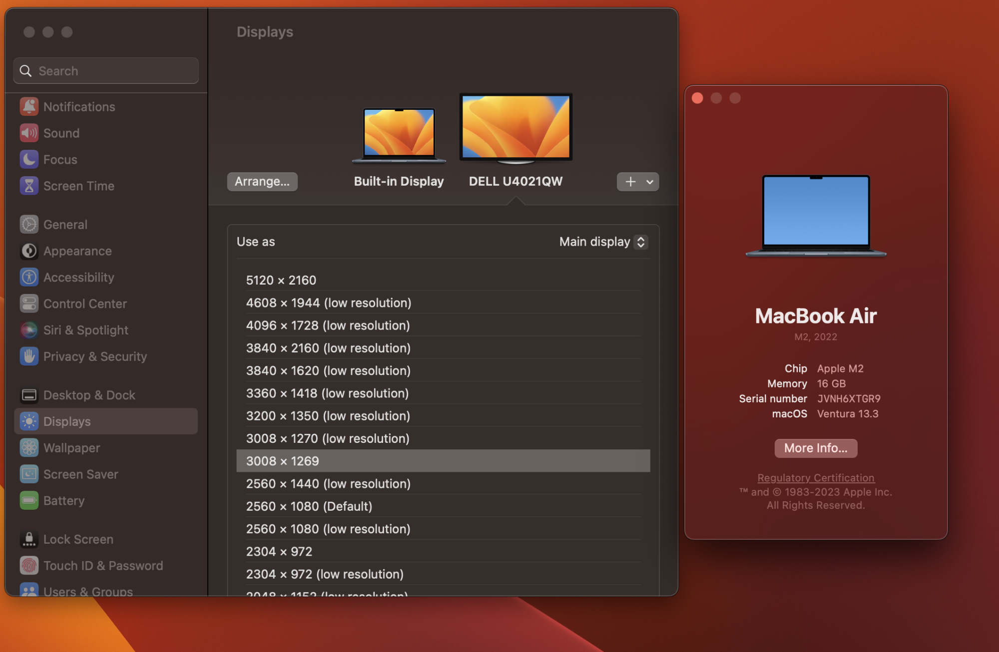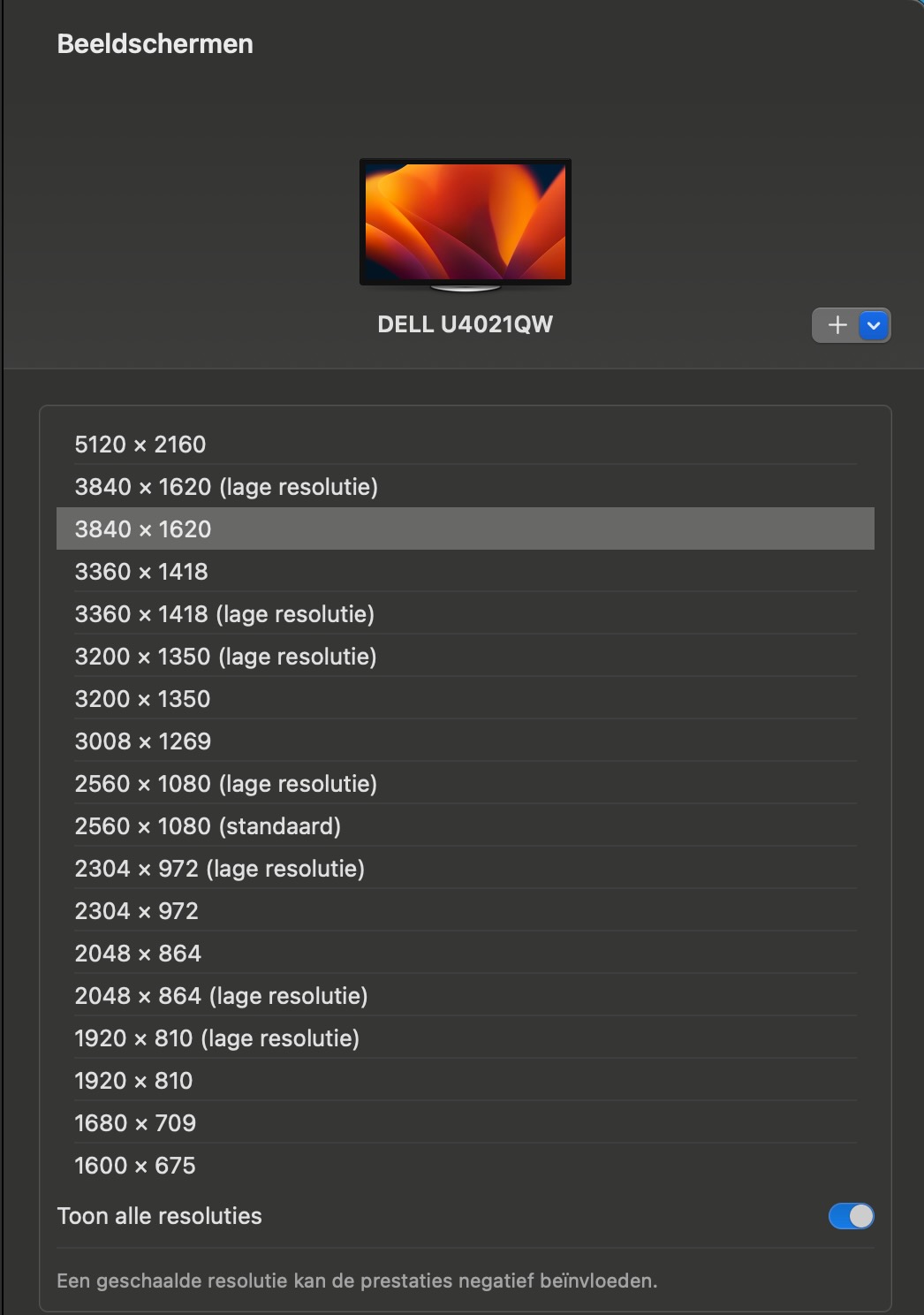 I see on YouTube that a user has resolutions available that cannot be selected by me. My U4021QW is connected to a Mac Mini M2 Pro via DiplayPort.