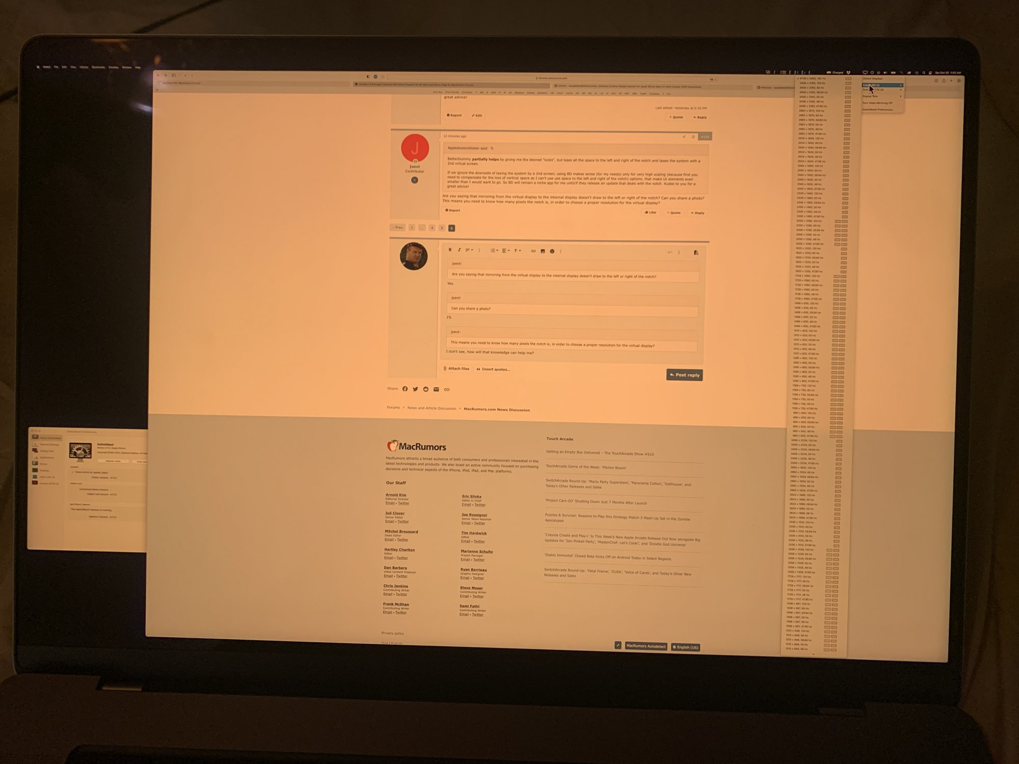 We probably can't get the pixels around the notch - Apple needs to add a "include notch" option for mirroring (or can a third party do it?) - but we can choose the best resolution that matches the aspect ratio of the remaining pixels.How will this knowledge help me? As far as I understand, BD can only create a rectangle with almost any resolution, but it can't account for the notch (perhaps devs will add that later if enough folks ask them to). BD does not have 14:9, it only has 16:10, maybe 14:9 is what the devs need to add?