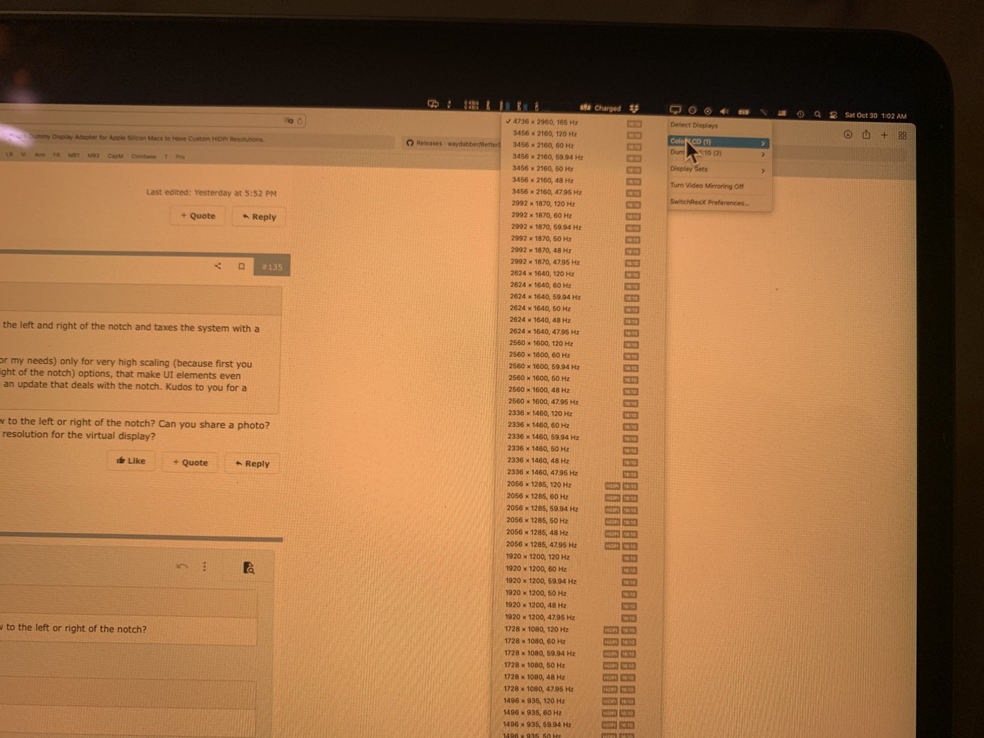 Are you saying that mirroring from the virtual display to the internal display doesn't draw to the left or right of the notch? Can you share a photo?BetterDummy partially helps by giving me the desired "looks", but loses all the space to the left and right of the notch and taxes the system with a 2nd virtual screen.