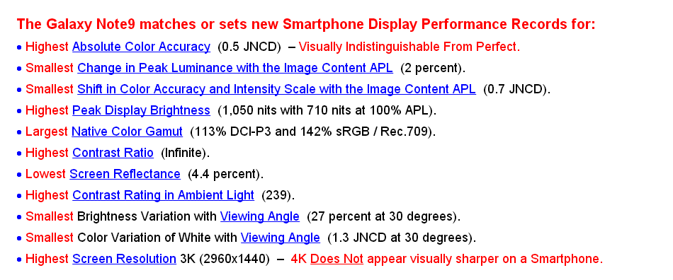 The iPhone XS Max matches or sets new Smartphone Display Performance Records for: