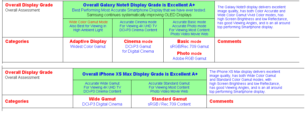 Samsung S9 and Note 9 are green in ALL AREAS....the true best smartphone displays but you guys should thank Samsung for supplying yours on the Xs and Xs Max which is green in some areas but gets the same grade SMH payolla....