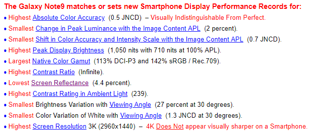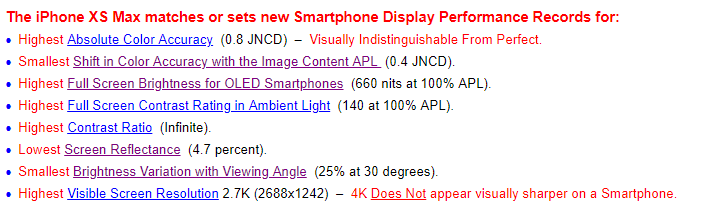 1. They stated XS Max match / sets record for Absolute Color Accuracy which is false. Note 9 is .5, Xs Max is .8.