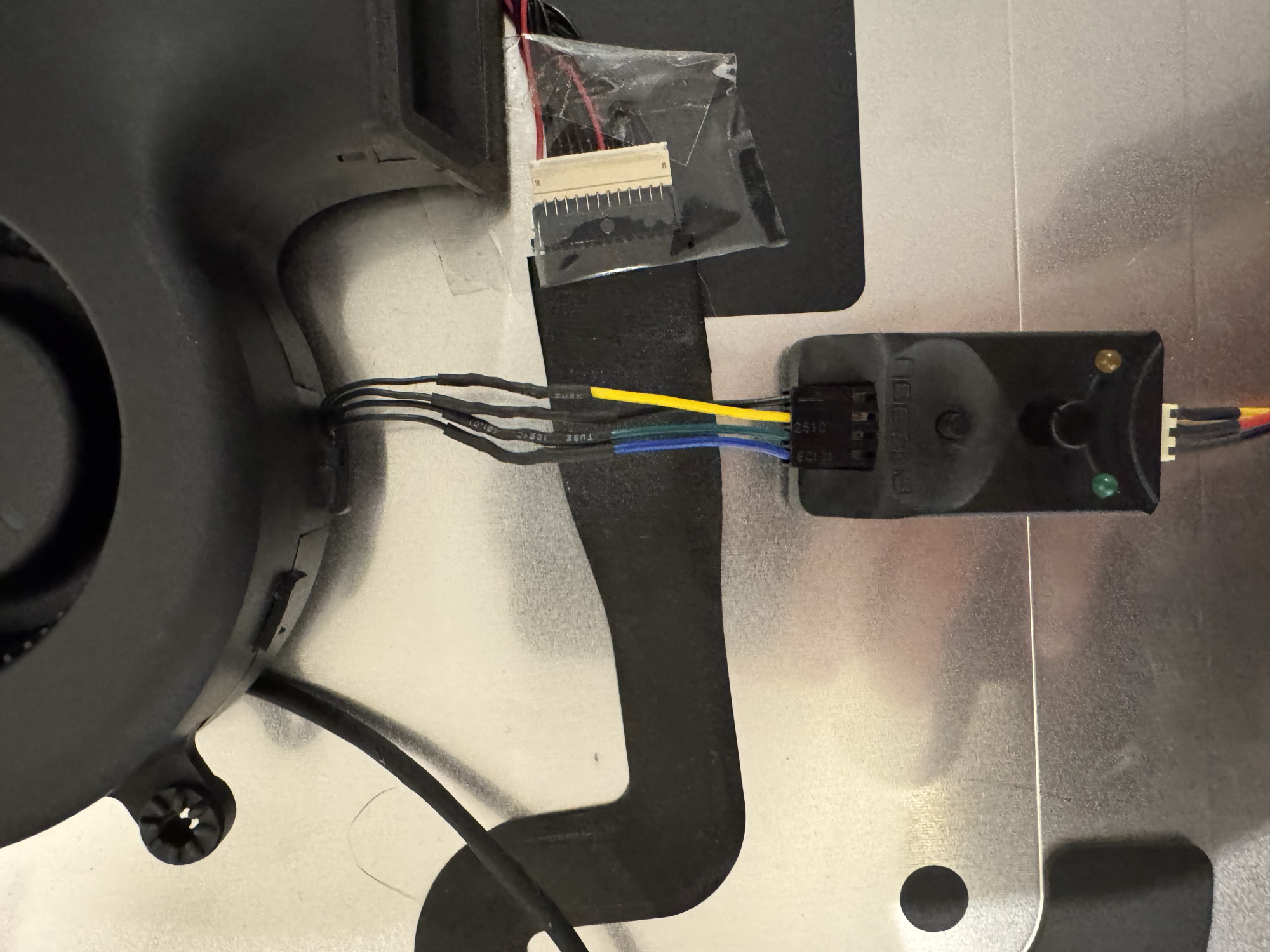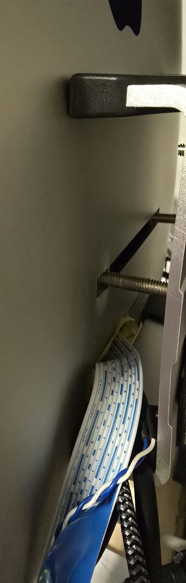 The extension cables for DP, HDMI, USB C and the control board are routed through a hole I dremeled in the ventilation grille. The hole is hidden by the VESA stand (see detail image here: