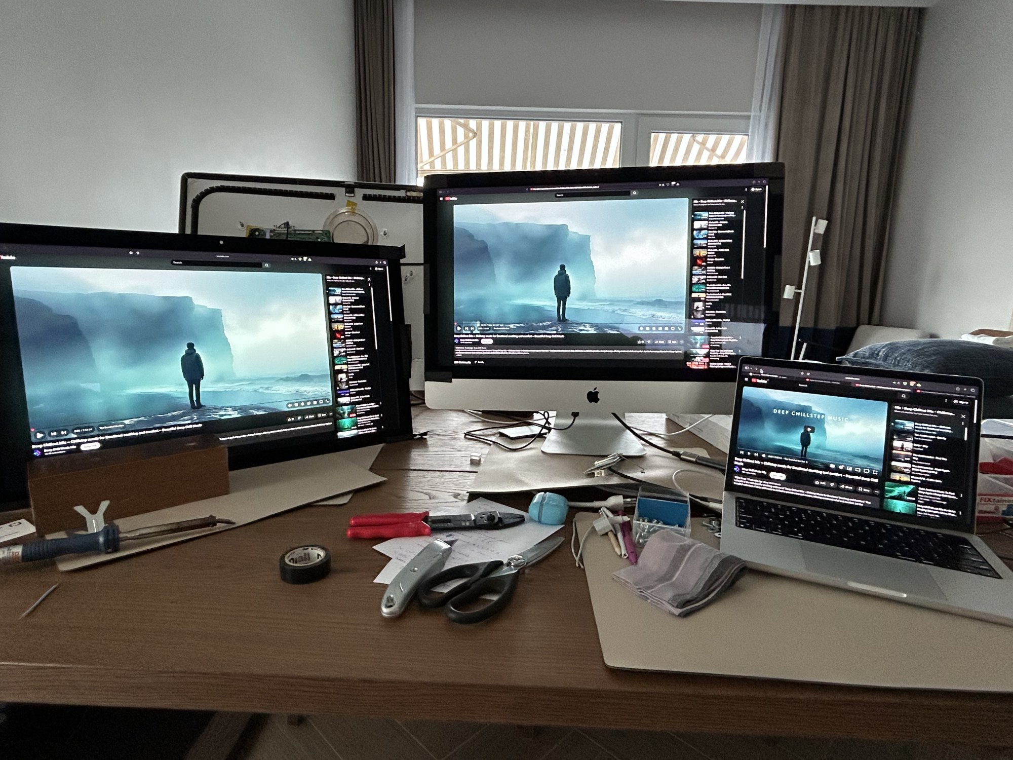 My setup is; original iMac 2017 speakers, original iMac 2017 PSU. I added a 12V to 24V step-up converter & 15A automatic fuse from Amazon and the cross-over filters that StoneTaskin provides. I also disregarded the "replacement" adhesive kit from Amazon and went for real Chinese made "3M" foam tape which very closely mimics the original Apple foam tape. See a full image of my setup just before I attached the display here: