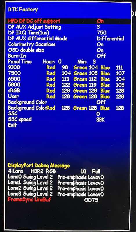 Initially I saw what looked like a panel test, changing between solid colours (red, green, etc.)