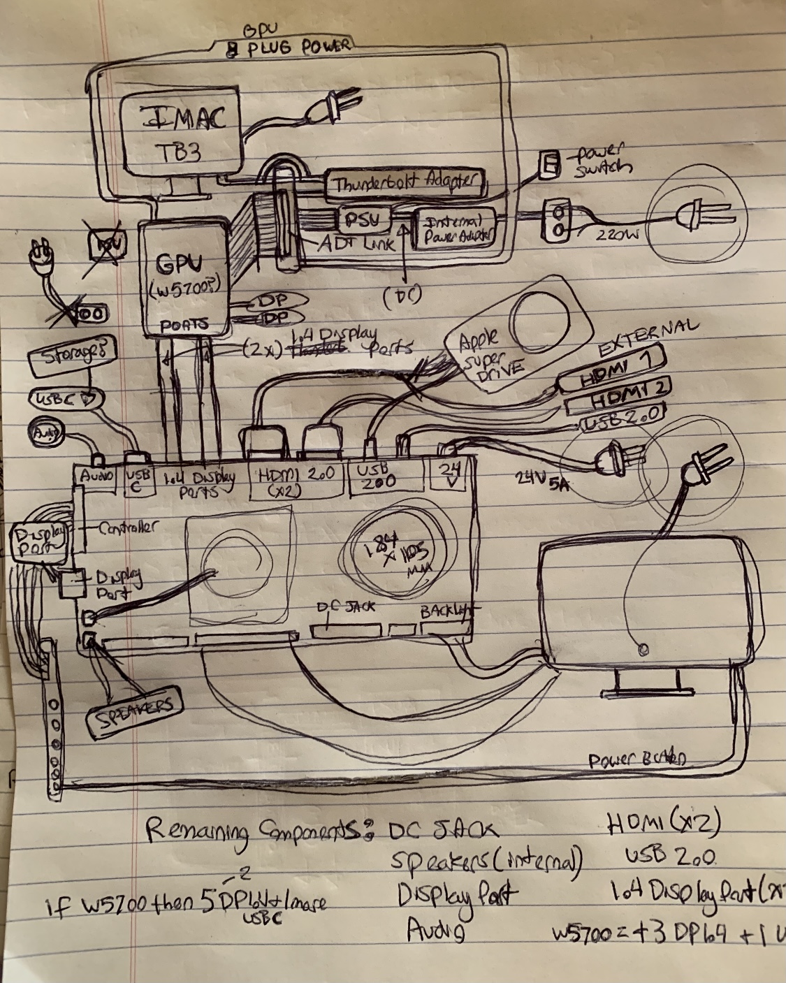 1. I wanted to build into the case a SuperDrive for DVD/CD reading and writing. I tested it plugged into the board as well as plugged into a powered Dell dock and it wouldn’t work within either. I’m curious if there is a python/JS C++ or Swift workaround since it seems like it’s a software related feature block and it would be cool to have a 2019 iMac dual display with a CD Drive lol. (Maybe it’s just me).​