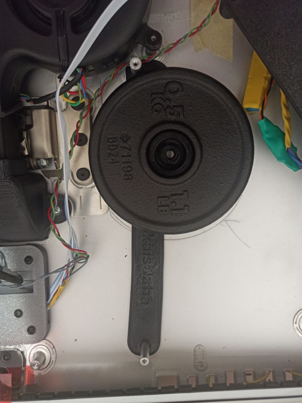 Something that is not discussed much and I think it is necessary. When removing the motherboard and the power supply, we subtract a little less than 1.5kg and the adjustment spring for orientation needs that weight. After studying different options, I decided to add part of that subtracted weight. For me the easiest solution was to buy two 0.5kg gym weights :)