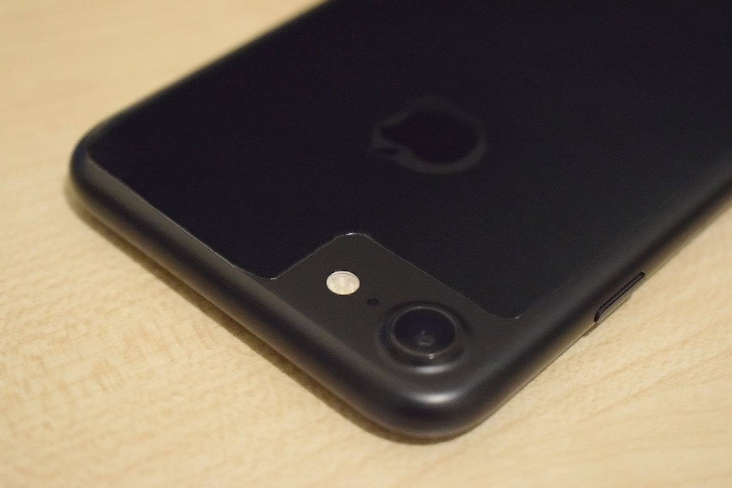 This is the DIY skin I made. I first used a glass iPhone 6 screen protector as a stencil, traced around its edges onto the £1 iPad screen protector and then cut out the general rounded rectangle shape with a swivel blade and metal ruler (don't forget a cutting mat!). The camera and flash slots were then cut out with scissors. It gives a matte black iPhone 7 a near jet black finish and provides basic scratch protection, however it won't protect the curved edges. This current version might have air gaps on the edges, but if you cut closer to the edge of the stencil you can eliminate these.