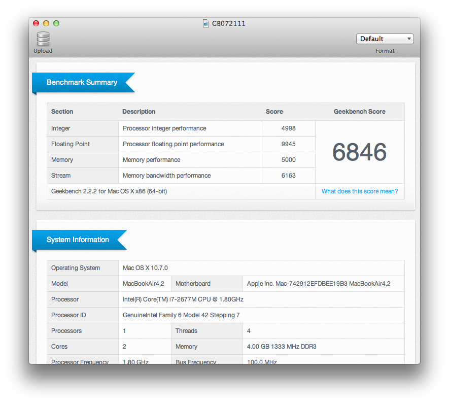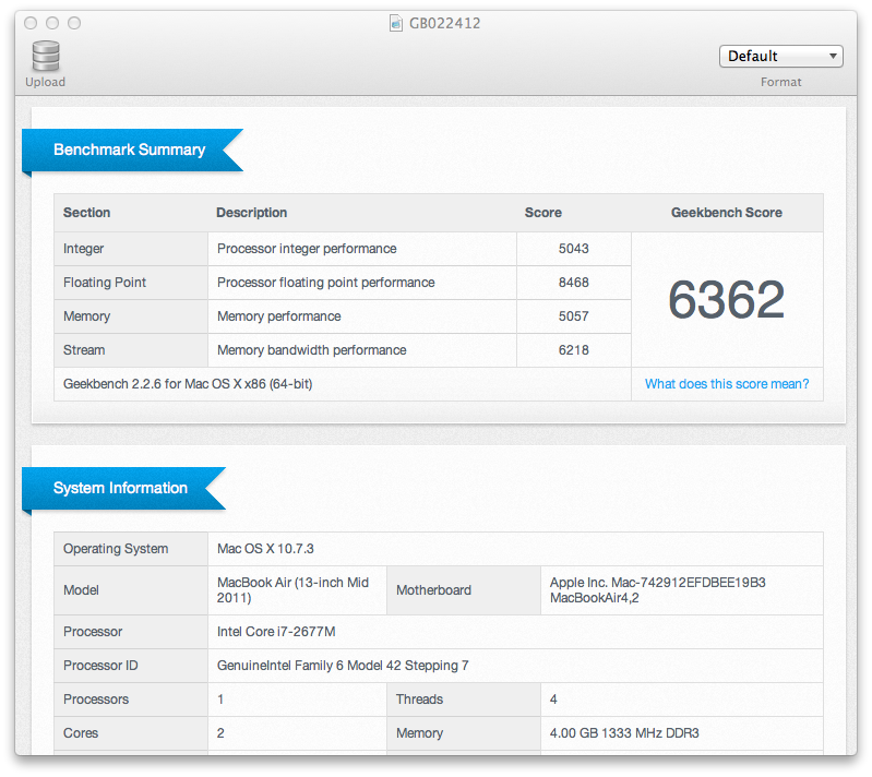 For curiosities sake here is my original Geekbench from July 21st 2011.