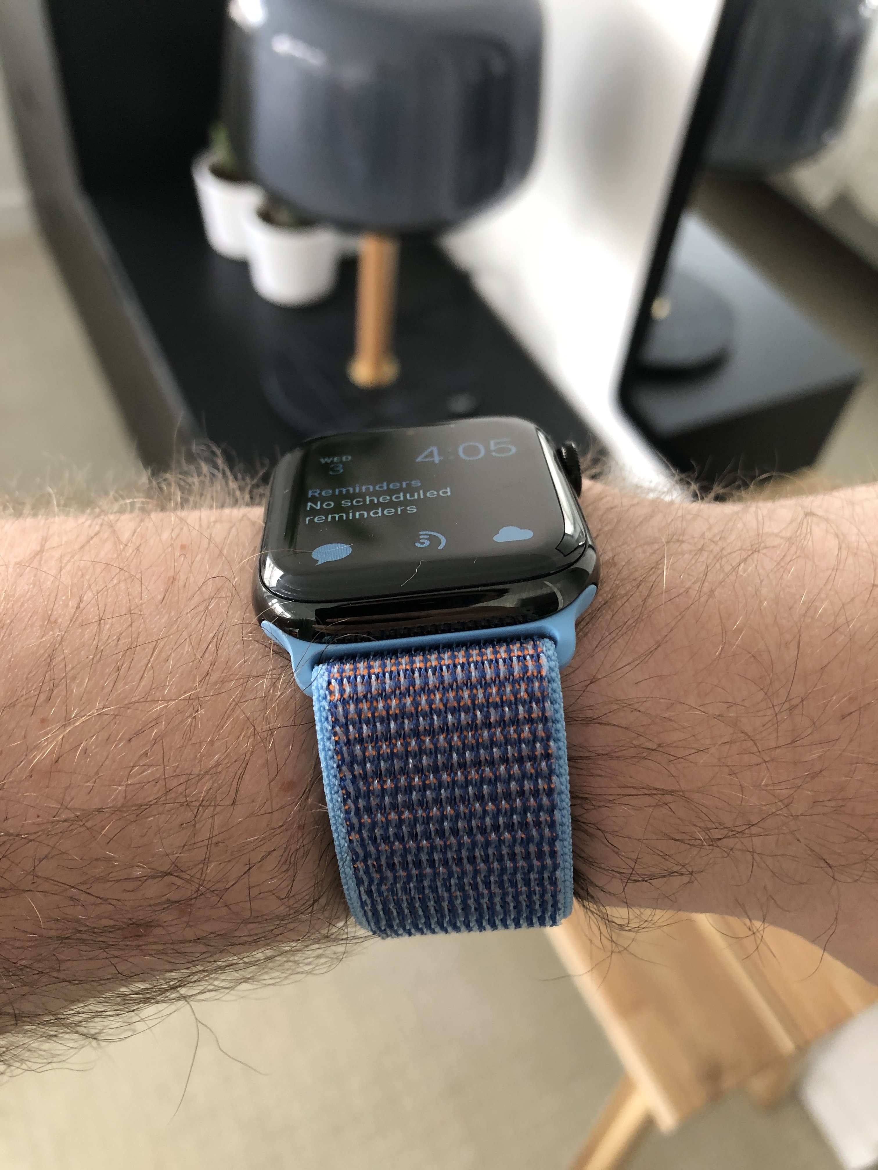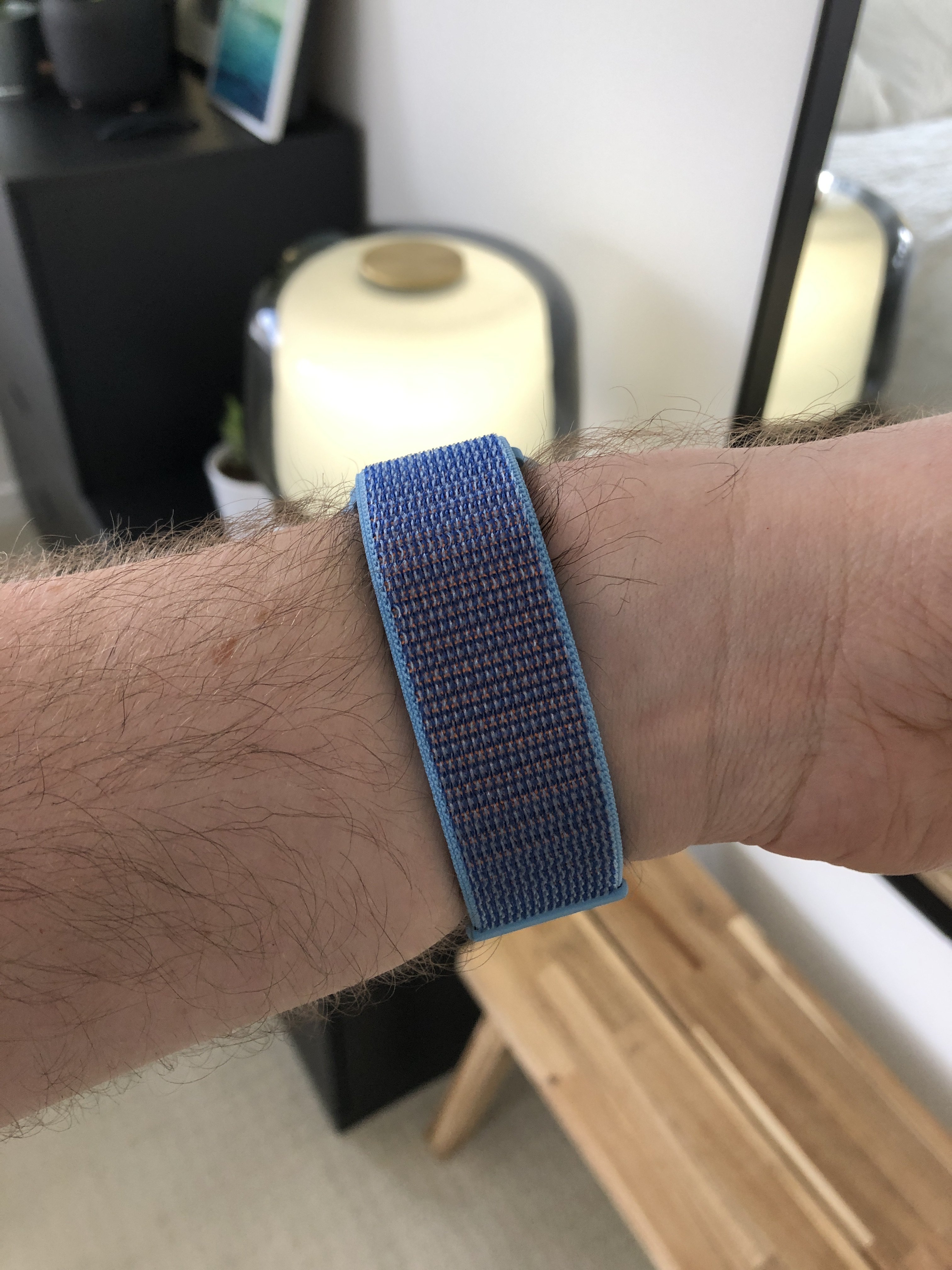 I must admit that the Sport Loop has won me over. At first I was kind of underwhelmed by it. My S4 came with the seashell (light gray) sport loop. I thought it looked nice for a fabric band, but I was concerned that the velcro wouldn't be secure enough, or that it would pull at the fabric and cause it to fray and wear prematurely. I was also worried other things catching on the loop fabric. It has been my most frequently worn watch band of the last 4 months, and still looks new and holds securely. I just keep going back to it because it is so comfortable. My other watch bands are the sport band that came with my S0, a knockoff leather loop (because Apple refuses to make a 38/40mm size), a knockoff woven nylon, and a third party leather strap.