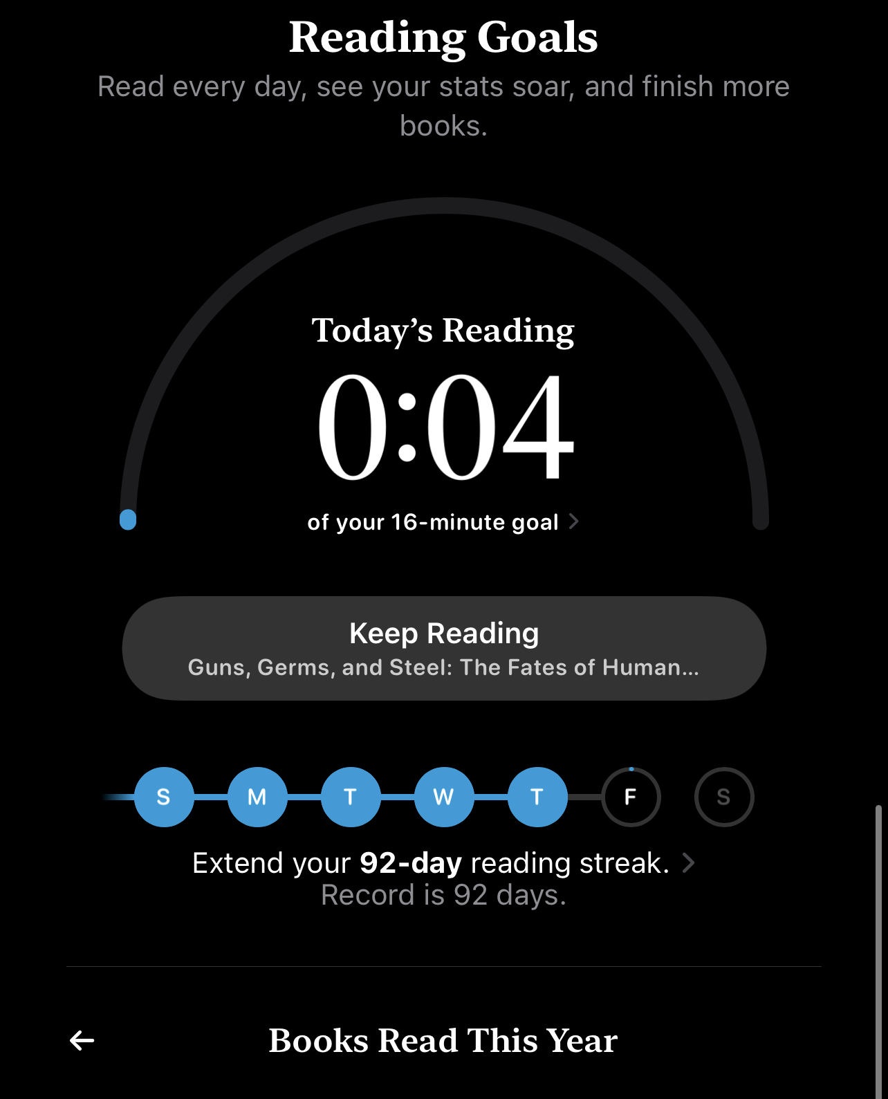 I'm probably stuck with Apple Books - and the syncing part is unbeatably great (when you get a DRM free book or PDF). Love the tallying of daily reading and books read over the years goals.(I know Kindle has this too).