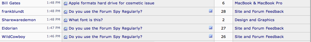 Refreshing does nothing.Hmm...and refreshing Forum Spy doesn't bring them up?
