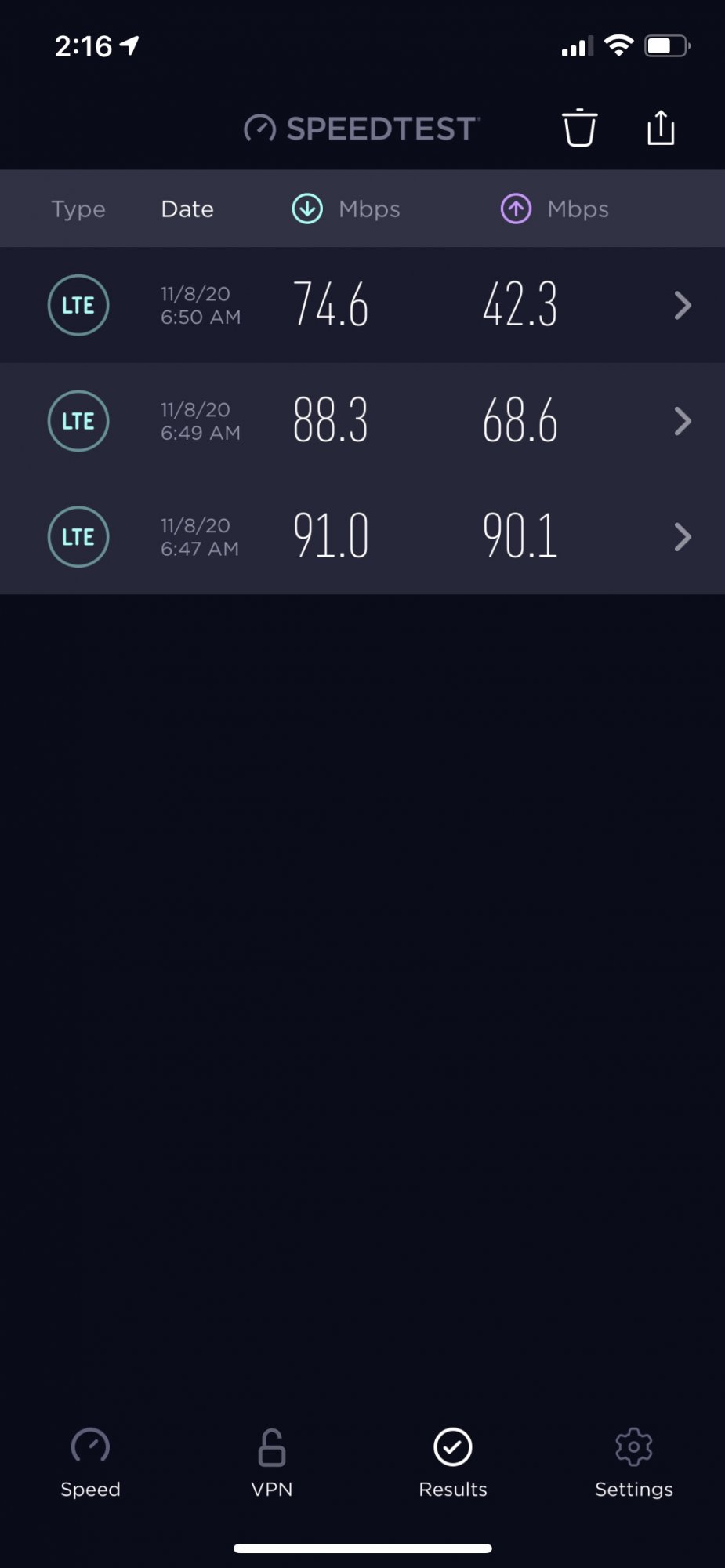 However, I did a speed test outside near a Verizon tower. What you see on top is LTE only, one in the middle is 5G only and the bottom numbers shows 5G auto. Notice a difference? So I believe I’m getting some 5G in my area without it showing the 5G icon in the upper right hand corner of my phone. Just my guess