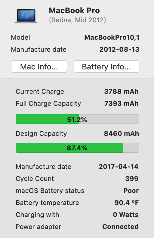 Attending a conference in DC until Thursday. This morning, my 2012 MBP wouldn't turn on. I had it charging overnight. It turns out that I can power it on when it's plugged in, but when I disconnect the power, it abruptly turns off. The battery is stuck at 53% charge and is not charging when it is plugged in. At least as of a couple of weeks ago, Coconut battery was showing good battery health. I did replace the top case and keyboard about a month ago so I am wondering if the battery connector is somehow loose, but I don't have any tools with me to open it up and can't find anything near the convention center/Apple Carnegie Library where they might sell a pentalobe driver. At worst, I can just keep the laptop plugged in, but I'm thinking there must be a MR member nearby who has one I could borrow, rent, or buy!