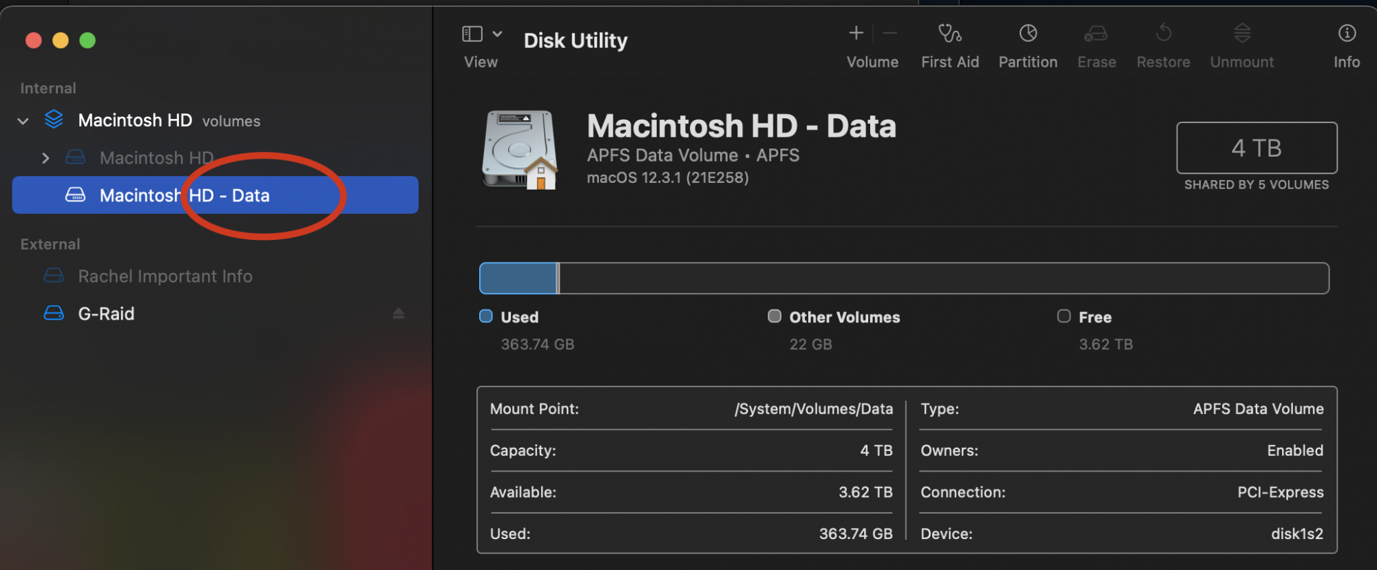 I keep getting fail errors when I run disk utility on "data" (see attached screenshot).