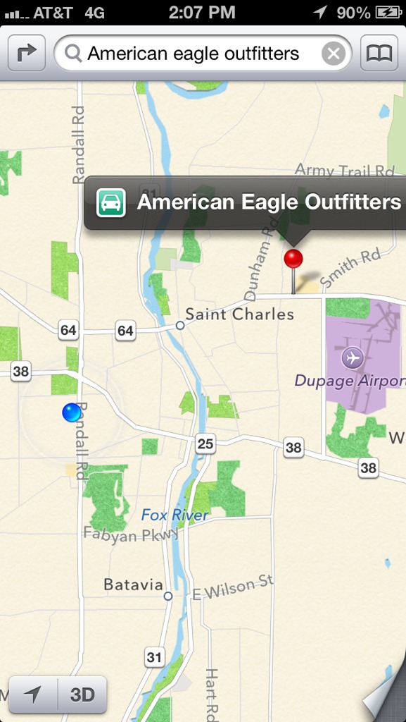 Edit: and yes... I'm being a smartass...at least you posted a screen shot so i could try it for myself. Sick of all these posts claiming stuff is wrong without at least some info to back it up. As you can see, I just typed in American Eagle and the search pin came up, so I selected it.