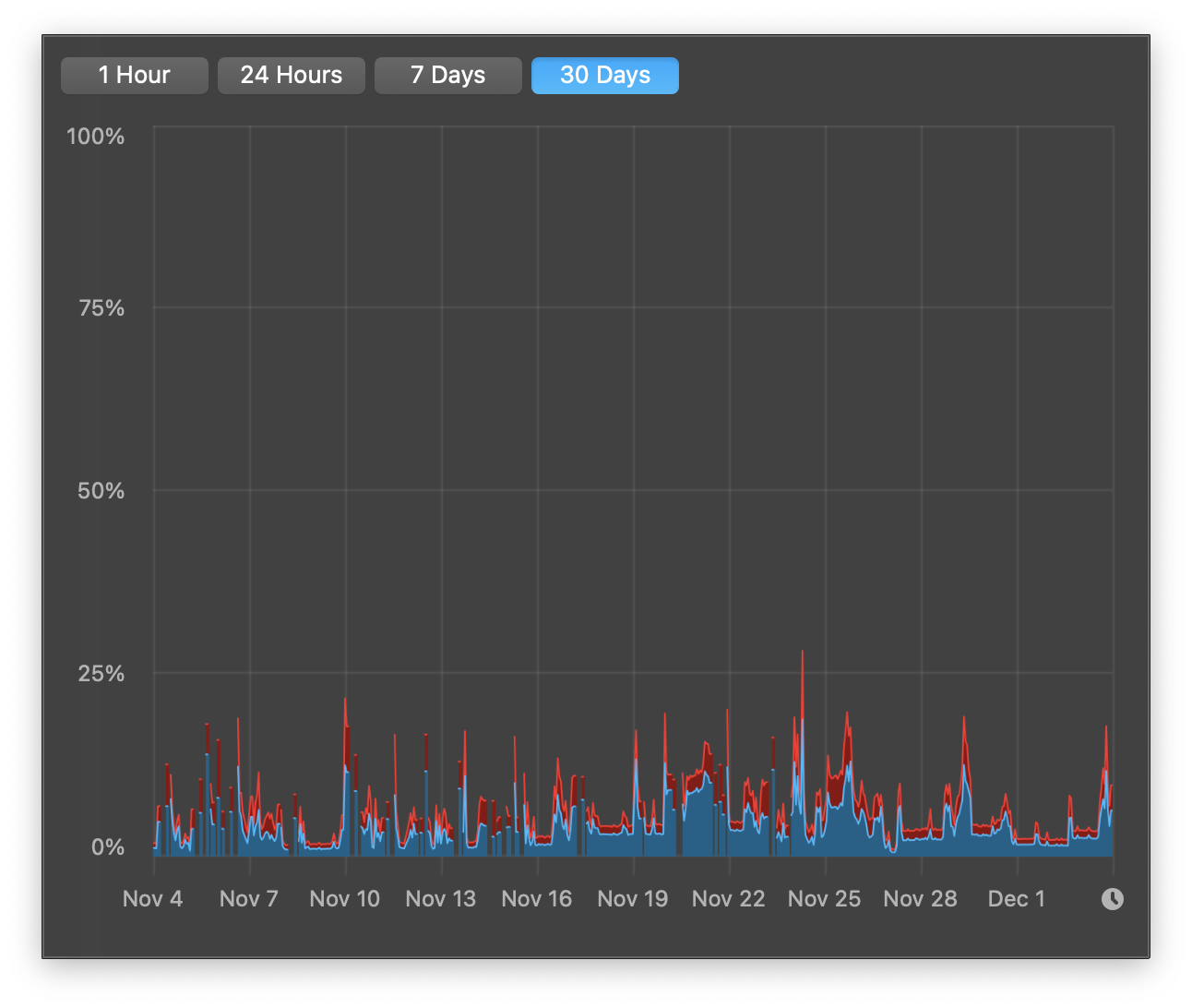 To double check, I uninstalled iStats Menu and it deleted the /Application Support/iStat Menus folder. Then I restarted and reinstalled iStats from Setapp, and the history makes sense now